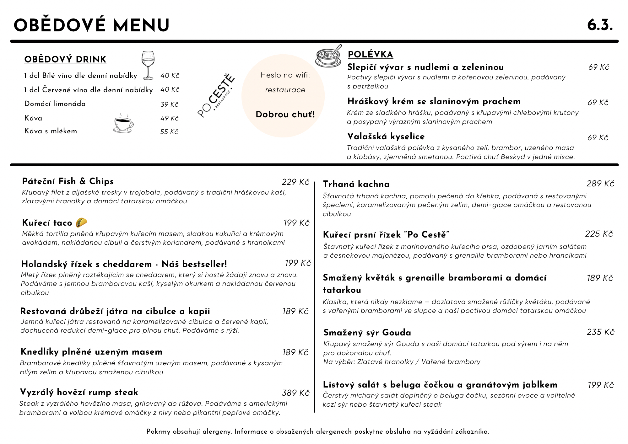 Vítejte v Po Cestě Restauraci! Rádi vás přivítáme v naší útulné restauraci, nacházející se v klidné okrajové části Valašského Meziříčí, zvané Podlesí. Přijďte ochutnat naše pečlivě připravené pokrmy české kuchyně a dopřejte si k nim výběr skvělých nápojů.